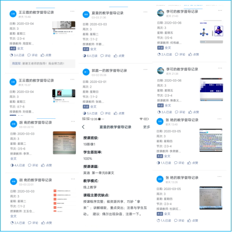 3.教学督导扎实精准。新修订了教学督导补充办法,从指导教师完善日志填报和直播手段的运用转向对教学过程和教学质量的检查。部门教学管理人员分包系(部、院)、联系教研室,全部加入到各个授课班级群中,随时听课评课,及时填报督导日志,并将督导意见及时反馈到教师本人,起到了指导、鼓励的积极作用,受到老师们的肯定。从第三周对20名专兼职教师进行的督导情况来看,绝大部分老师做到了备课充分,内容熟练,并能够合理分配授课时间,完成教学任务,师生互动增加。