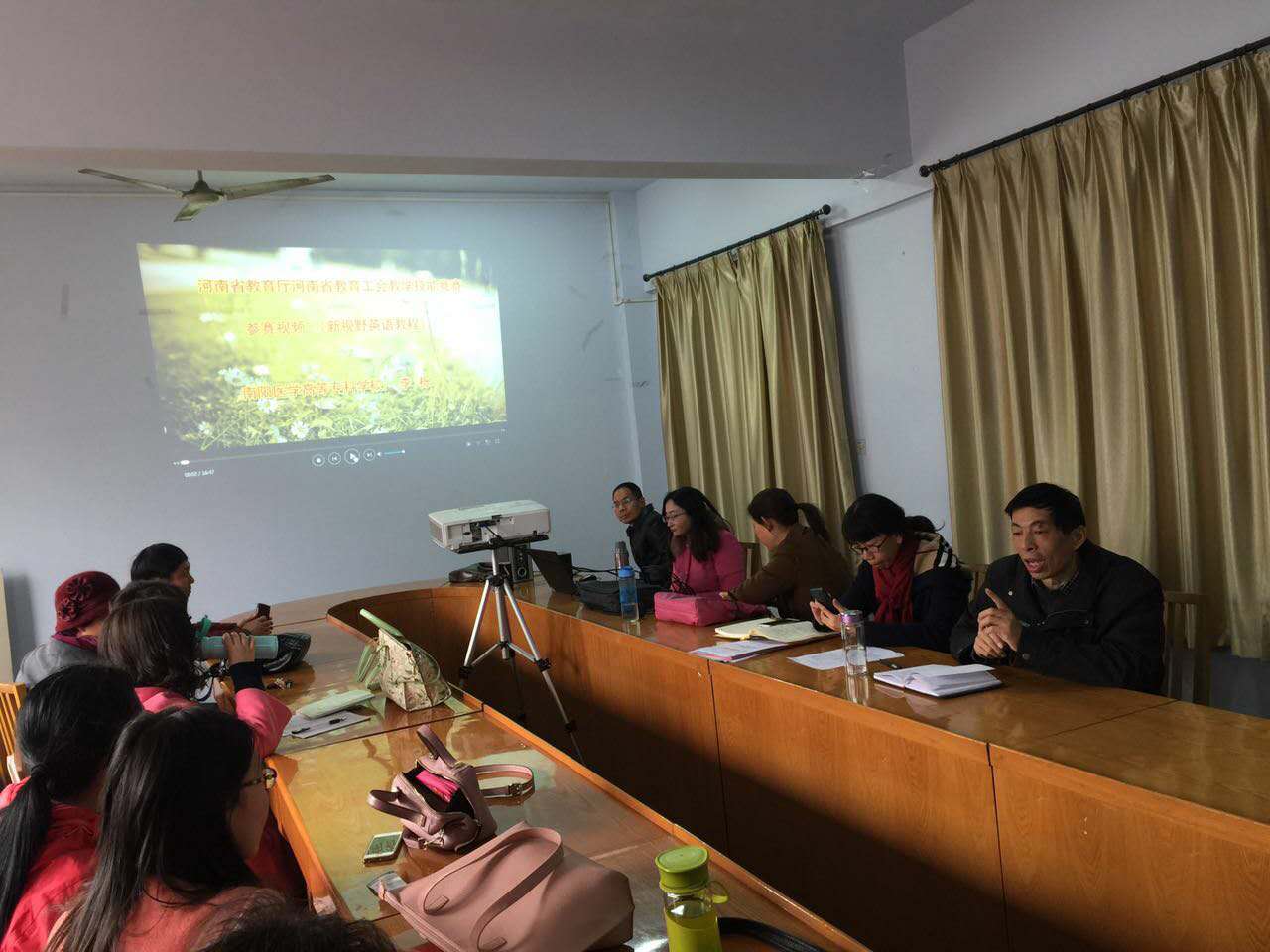 3月29日下午太阳成集团tyc33455ccww全体老师观看了外语教研室李栎老师参加2016年由河南省教育厅和教育工会共同举办的教师技能大赛(高校外语)参赛录像,在这次大赛中,李栎老师荣获一等奖的优异成绩。