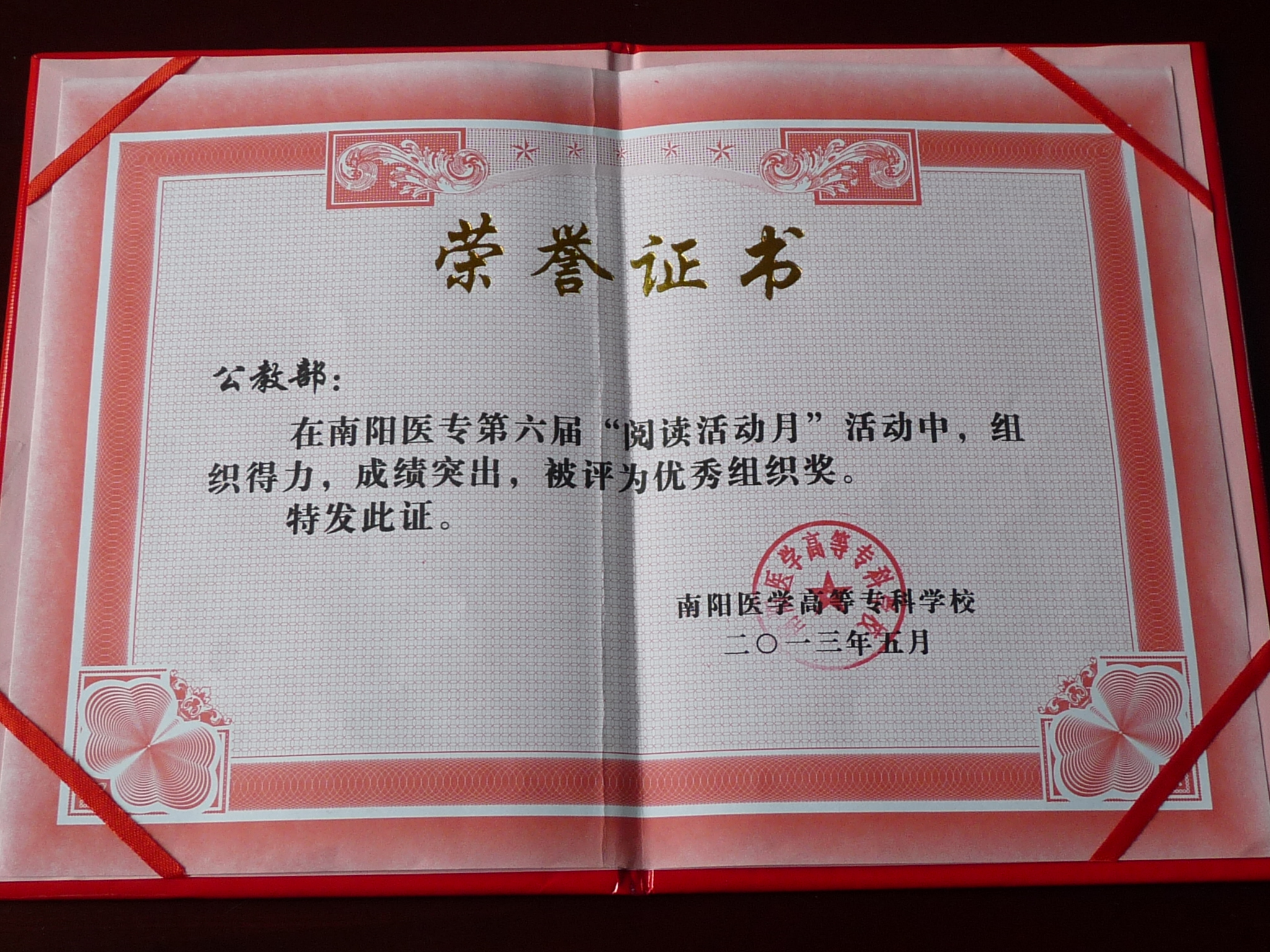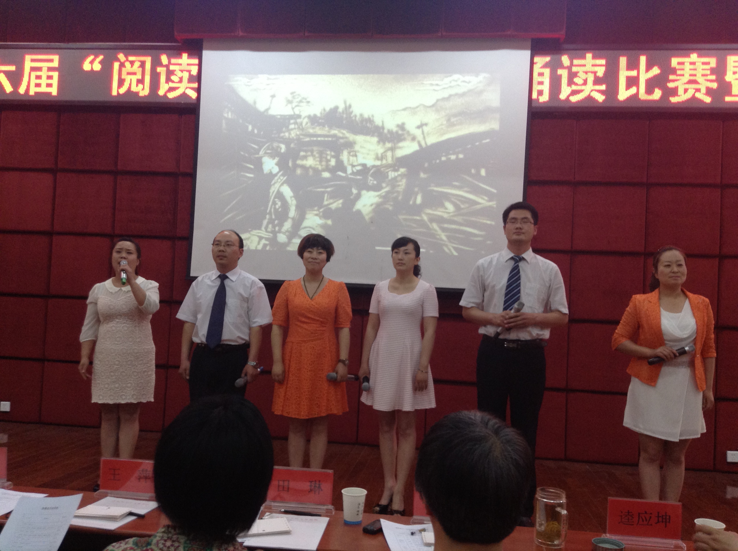 为传承和弘扬中华民族优秀文化,彰显中华语言古文化魅力,进一步提高我校教师普通话水平,加强课堂教学语言和工作语言的运用规范,推动全校第六届“阅读活动月”的深入开展,学校于2013年4月19日至5月20日开展了教师“经典诵读”比赛。我部领导高度重视,动员组织全体教师积极参与“阅读活动月”的各项活动,并推选两组选手参加校级朗诵比赛。经过激烈的校级复赛和决赛,两组选手均取得了优异成绩,展示了我部教师的技能水平、其中鲁全贞老师获得了优秀奖;张艳、李江歌、李民民、闫璐、张旭斌、陈铁良等6人的集体朗诵获得取得了一等奖并代表学校参加省级比赛。我部也获得了优秀组织奖。