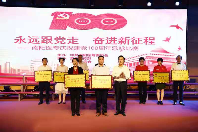 6月16日下午,我校在仲景东区礼堂成功举办了庆祝中国共产党成立100周年“永远跟党走·奋进新征程”歌咏比赛。在参赛的11支队伍中,由公教部直属党支部、机关二支部和机关五支部近70余人组成的合唱队,在比赛中脱颖而出,荣获一等奖的好成绩。
