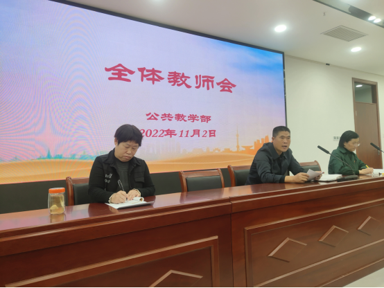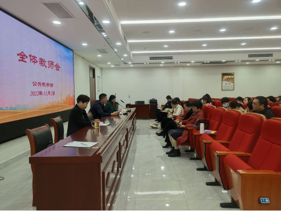11月2日周三下午3点,太阳成集团tyc33455ccww在仲景文化中心7楼会议室召开全体教师会议。公教部主任马纪伟做重要讲话,副主任夏曼主持会议,副主任王云霞安排期中教学检查工作,部门全体教师参加会议。
