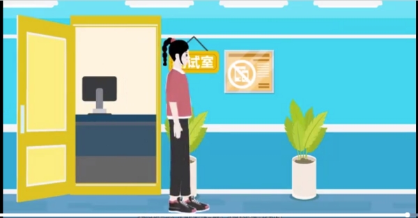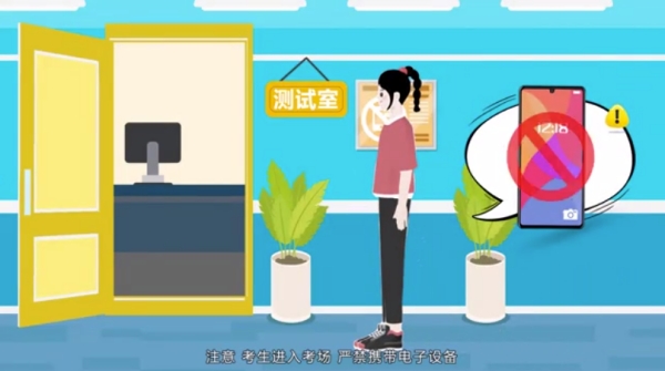 按照指令进入测试室(将物品放置在指定位置,严禁携带电子设备及与考试相关的资料)