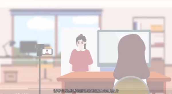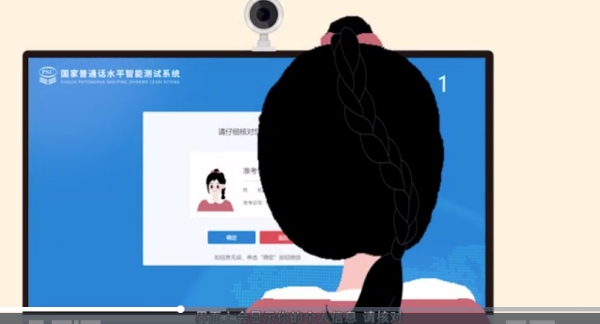 考生坐在指定的位置上采集照片(用于考试验证和采集用于普通话证书上的照片信息)