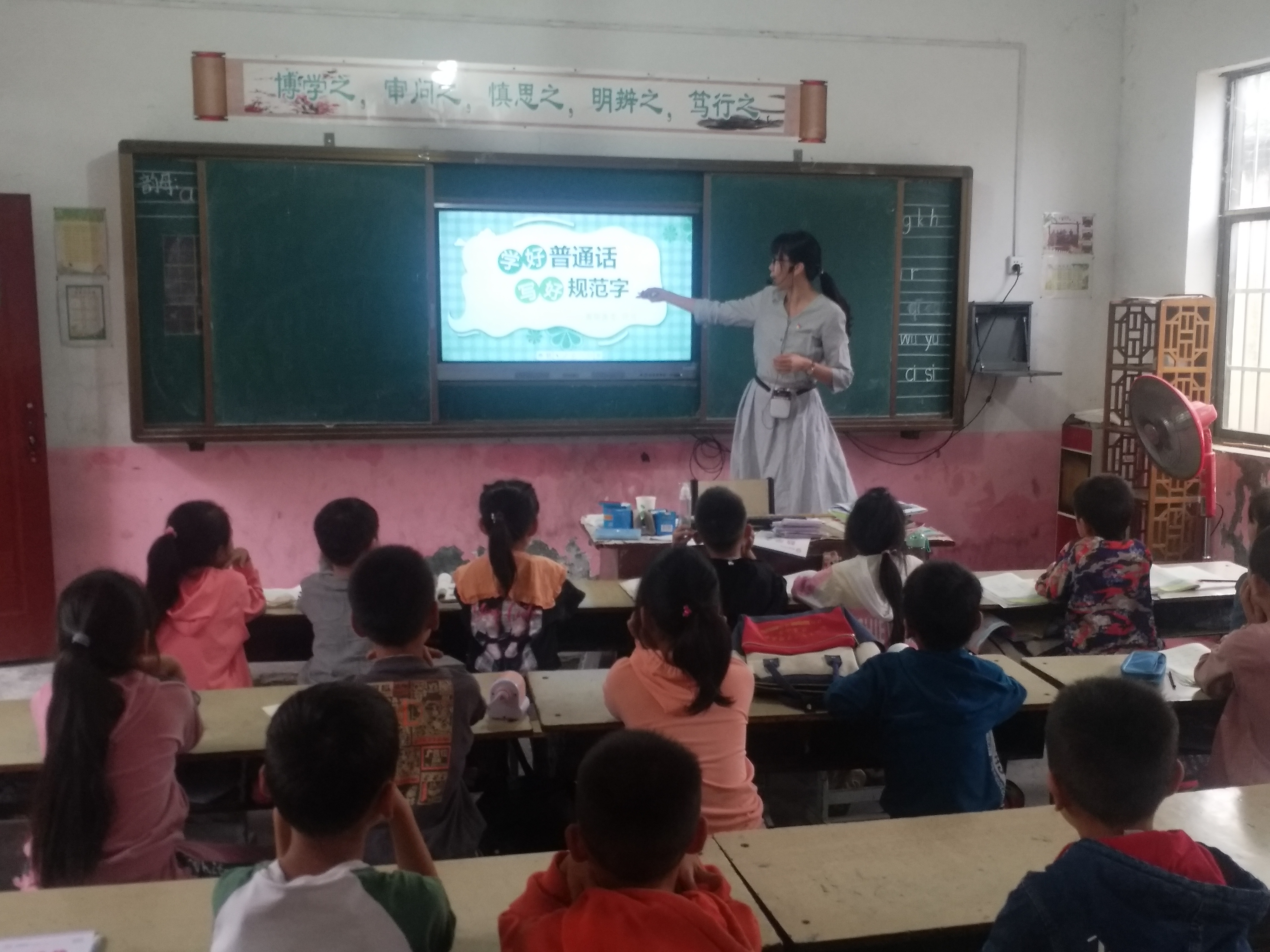 9月26日,公教部直属党支部组织党员代表,驱车赴学校对口扶贫点(方城县广阳镇官坡岭村)陈庄小学,组织部分师生开展普通话知识专题讲座并赠送学习用品,解读学好普通话、写好规范字的重要意义和基本技巧,传承弘扬以语言文字为载体的中华优秀文化,促进提升国家通用语言文字普及程度和普及质量,助力乡村振兴战略实施,服务铸牢中华民族共同体意识,共诵百年伟业,携手共写时代新篇。