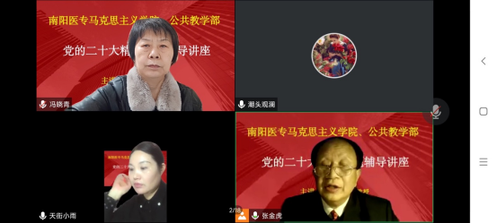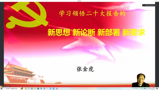 首先是马克思主义学院直属党支部书记、院长冯晓青强调了本次主题党日活动的意义,随后由张金虎书记带领大家学习党的二十大报告的新思想、新论断、新部署、新要求。张金虎书记从“两个结合”“必须牢牢把握的五个重大原则”等多个方面进行讲述。主题党日活动的最后由公共教学部直属党支部书记李巍进行总结发言。