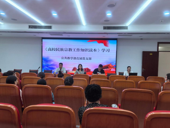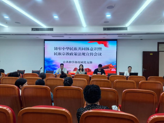 会上,李连焕传达了我校《关于开展铸牢中华民族共同体暨民族宗教政策法规宣传月活动的通知》相关精神,带领大家学习了《高校民族宗教工作知识读本》,并组织教师们集中观看了宗教政策法规宣传片。她指出,大家要充分认识铸牢中华民族共同体意识的重大意义,它作为新时代党的民族工作的主线,贯穿党的民族工作的全过程,对于维护国家统一、促进民族团结具有重要意义,铸牢中华民族共同体意识是每一位教育工作者义不容辞的责任。她强调,大家要牢固树立法治思想,深入学习习近平总书记关于宗教工作的重要论述,深刻领会其精神实质和丰富内涵,进一步提升思想认识。